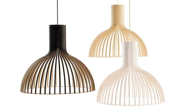 Holz-Leuchten von Secto Design. So wie das finnische Design - puristisch und auf das Wesentliche reduziert bauen sie eine beeindruckende Lichtstimmung auf. Entworfen vom Innenarchitekten Seppo Koho. Handgefertigt in Finnland. Aus feingliedrigen Birkenholz-Lamellen. Erhältlich in 3 Ausführungen: Birke natur oder Innenseite Birke natur und Aussenseite weiß bzw. schwarz laminiert. Empfohlen max. 60 W Glühbirnen, Energiesparbirnen 20-30W.