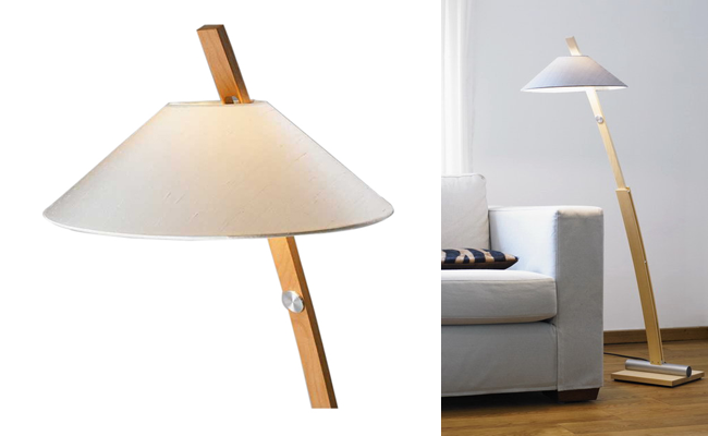 Der Arm dieser Stehleuchte ist sowohl in der Länge als auch in der Neigung verstellbar und der Schirm entsprechend schwenkbar.